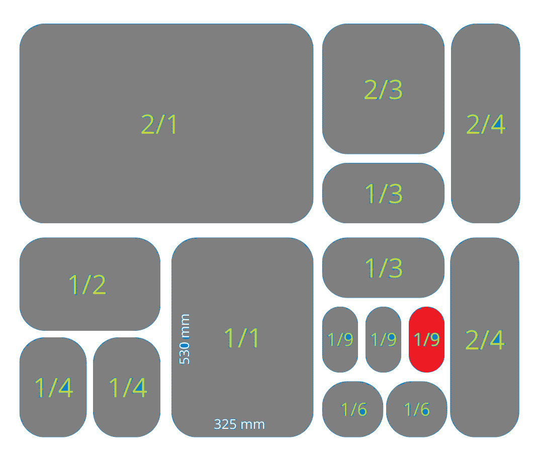 Bandeja Gastronorm 28mm - 1/9 GN (176x108mm) / Blanca o Negra / 12 pzas.