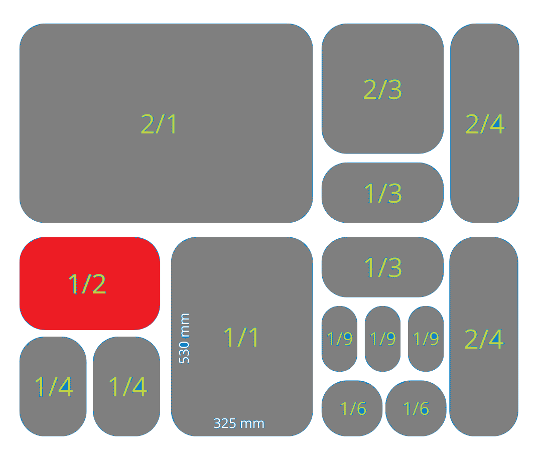 Bandeja 65mm - 1/2 GN (325 x 265mm) / Blanca o Negra / 1 uds